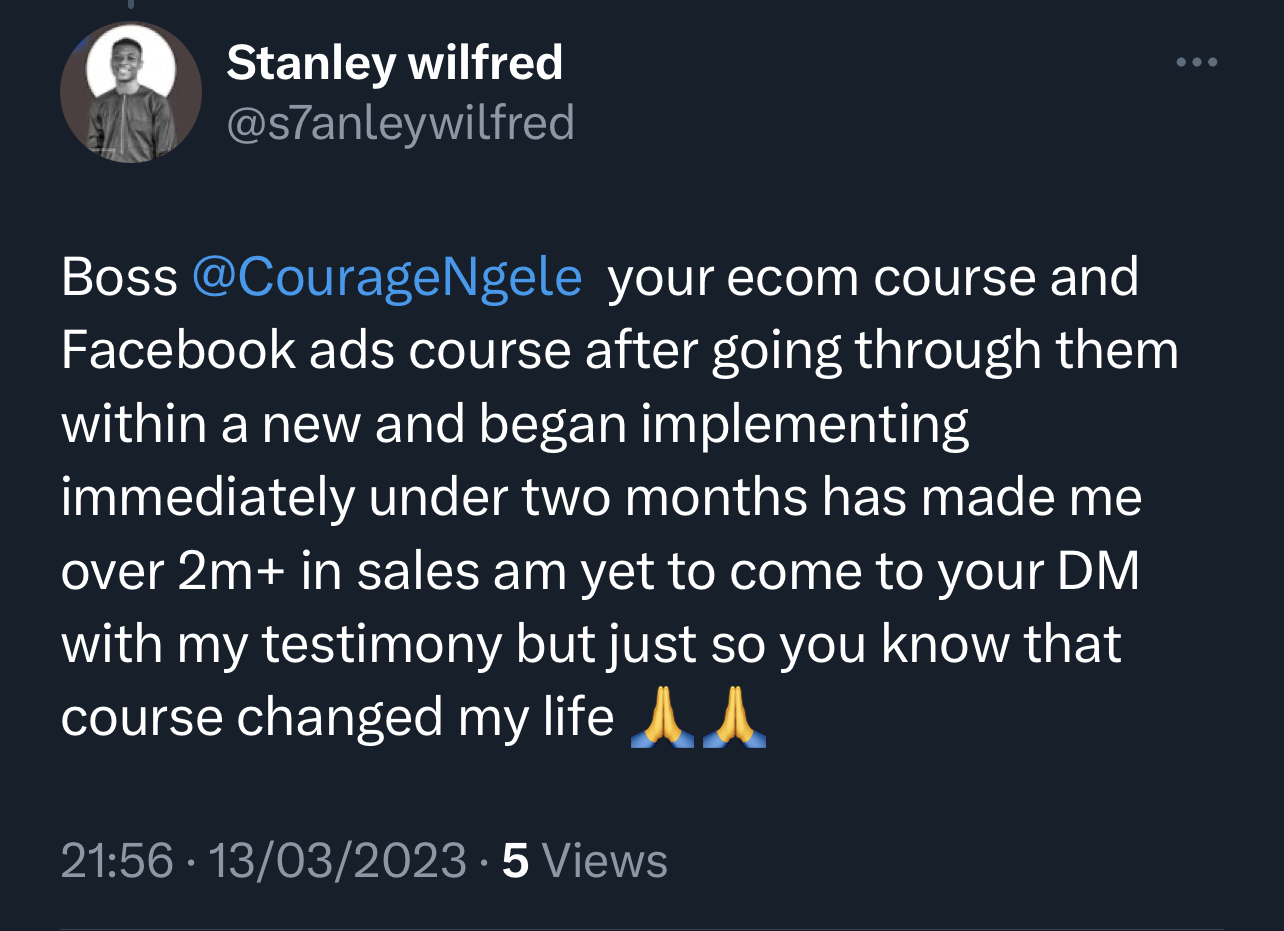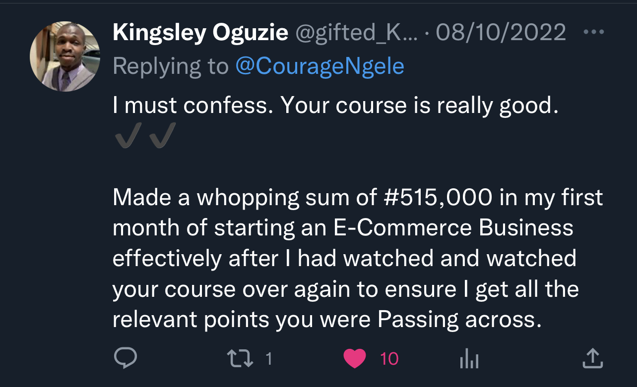 Courage Ngele is a Nigerian, born and raised right here, who has been doing e-commerce successfully for over 8 years.